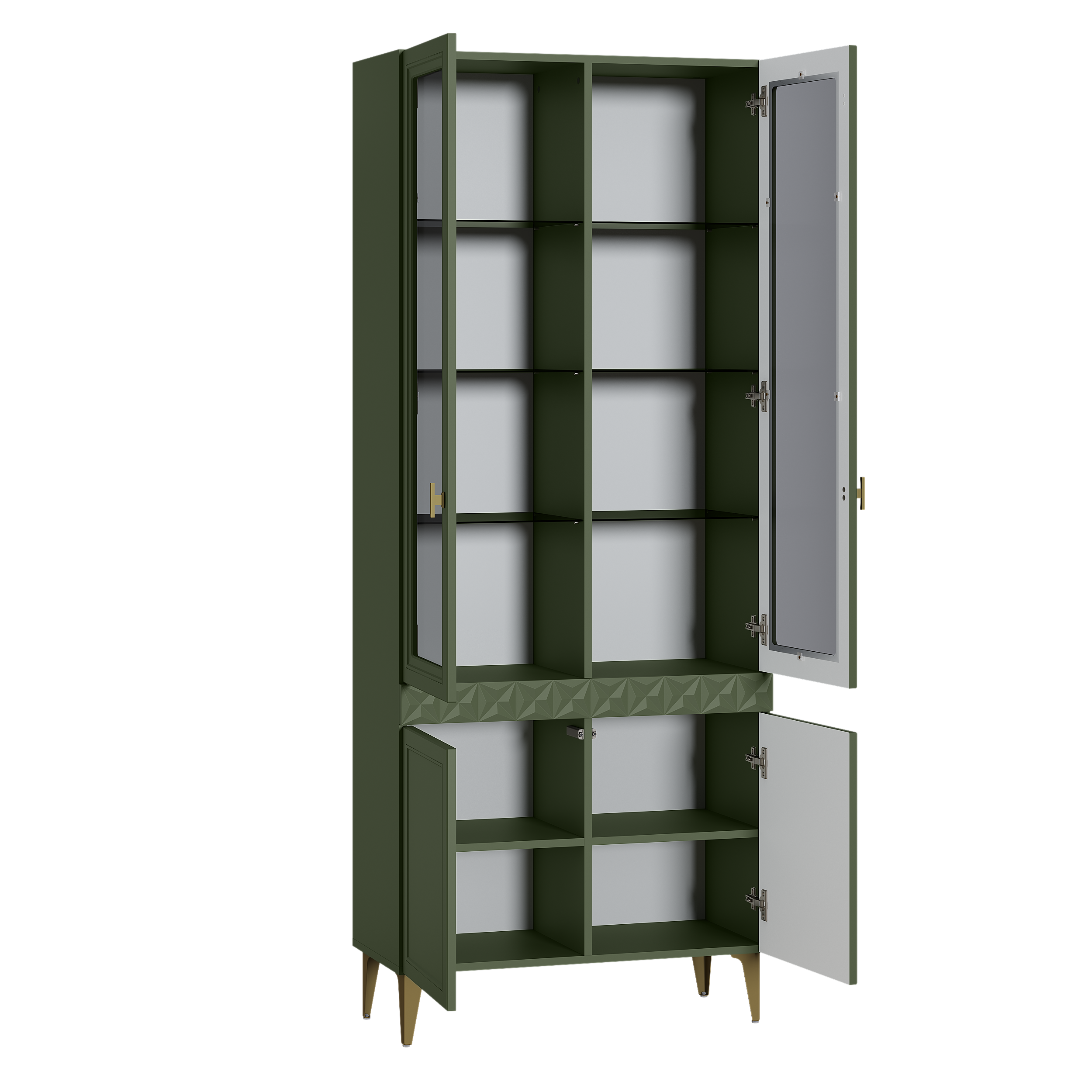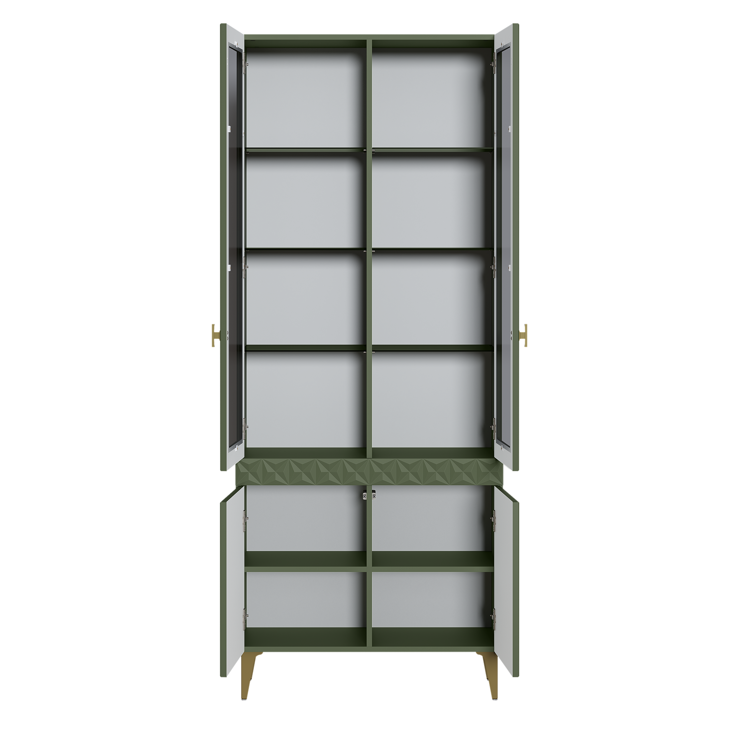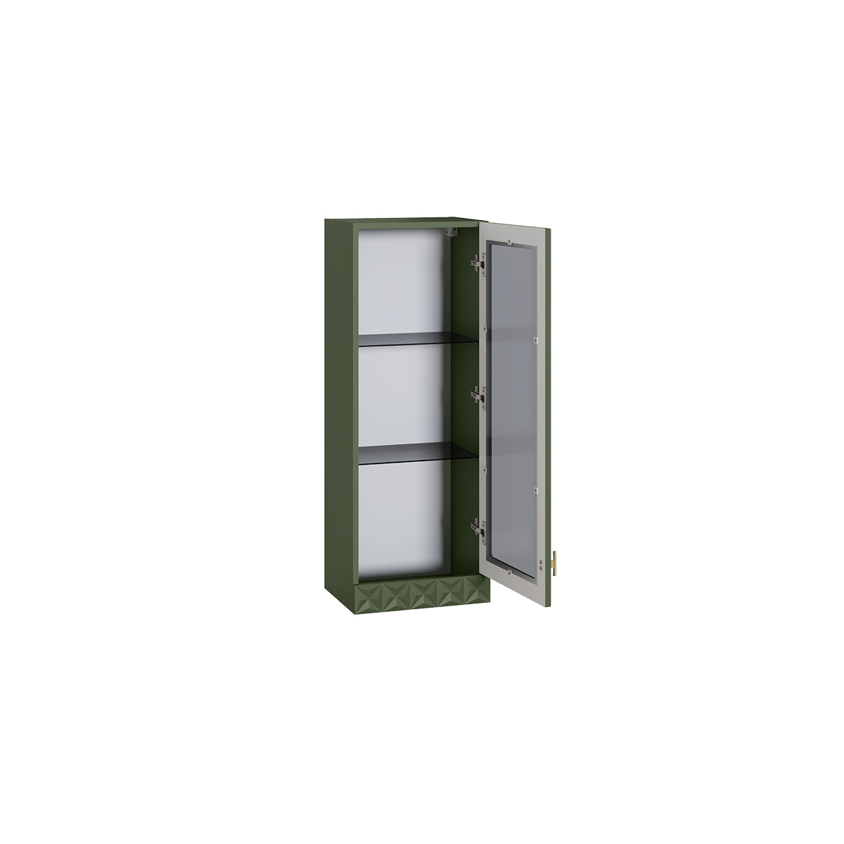 Шкаф-витрина Марион 16.397.01 дымчатый зеленый K521, олива шагрень AG 1050 ПВХ (собирается на любую сторону)