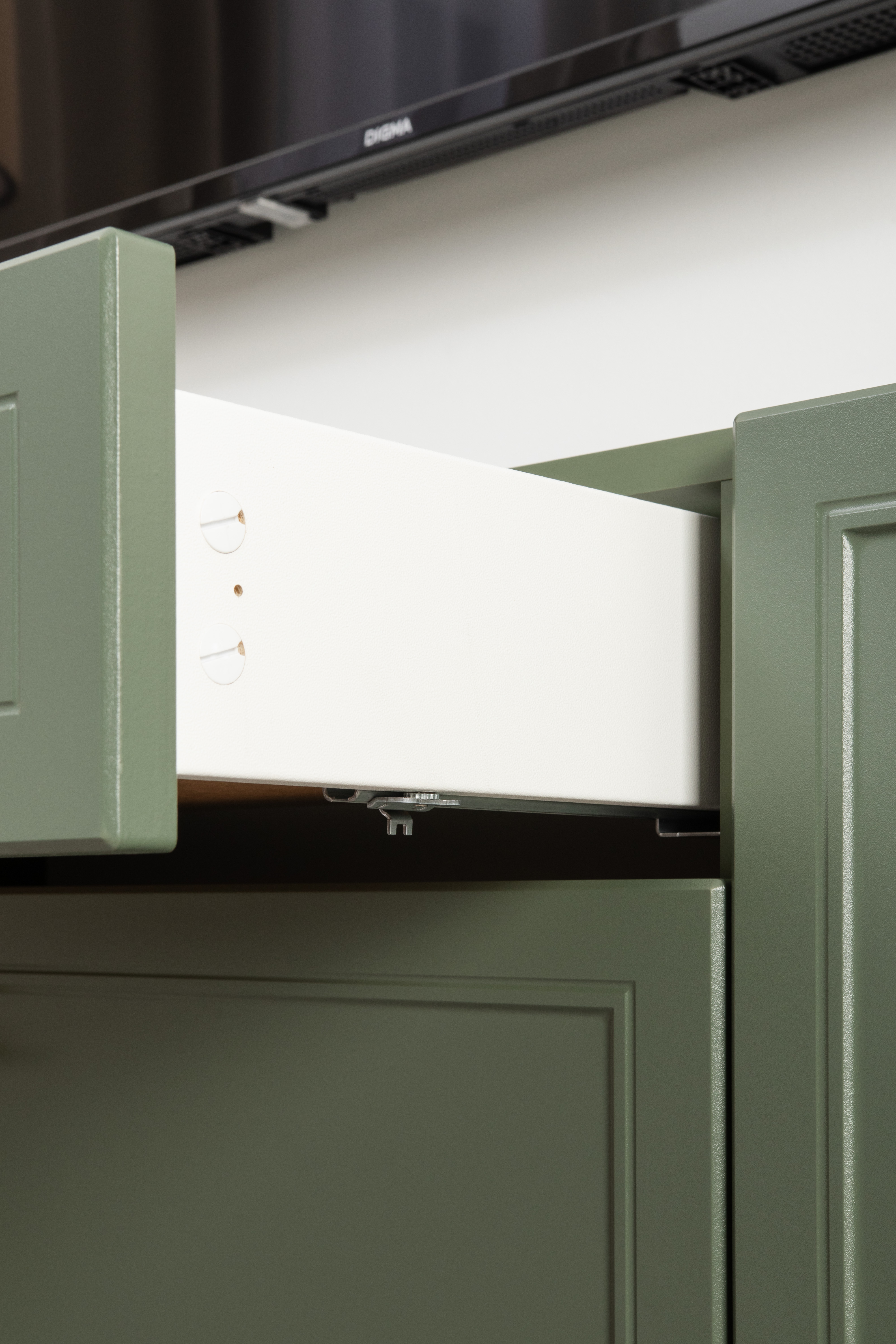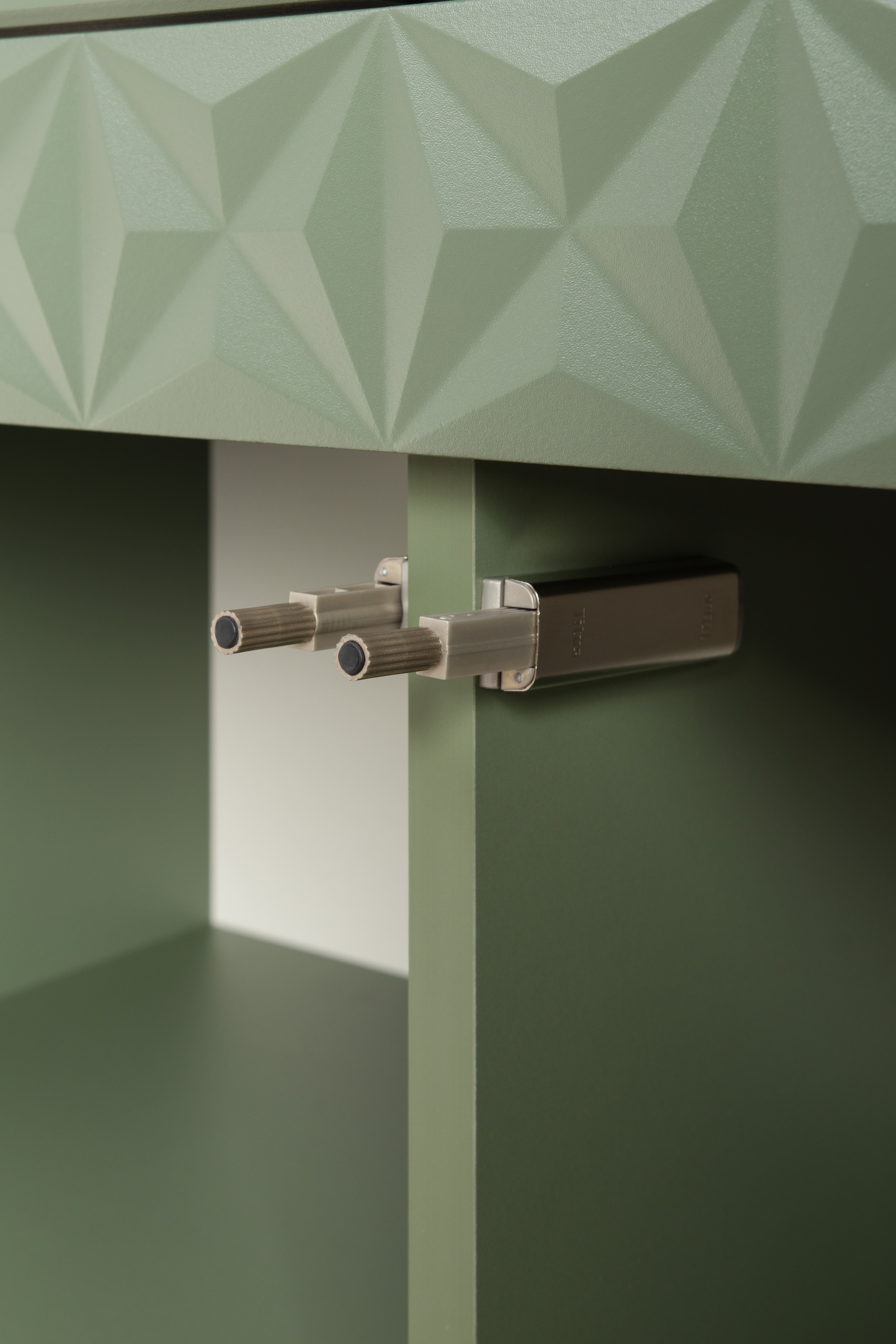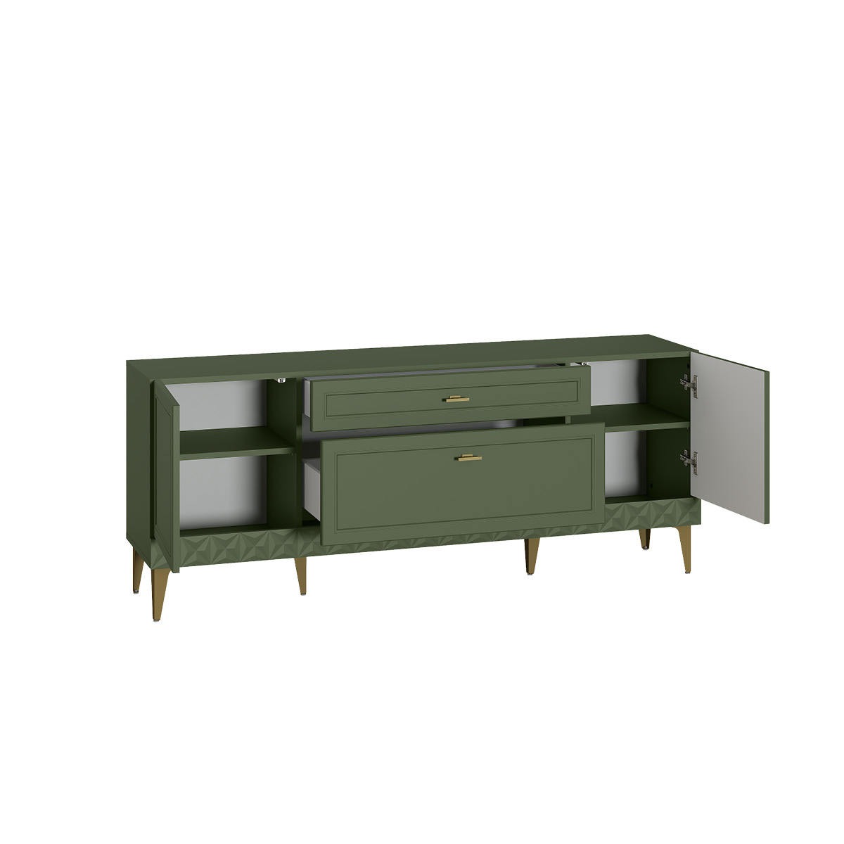 Комод Марион 16.249 дымчатый зеленый K521, олива шагрень AG 1050 ПВХ, белый PE шагрень