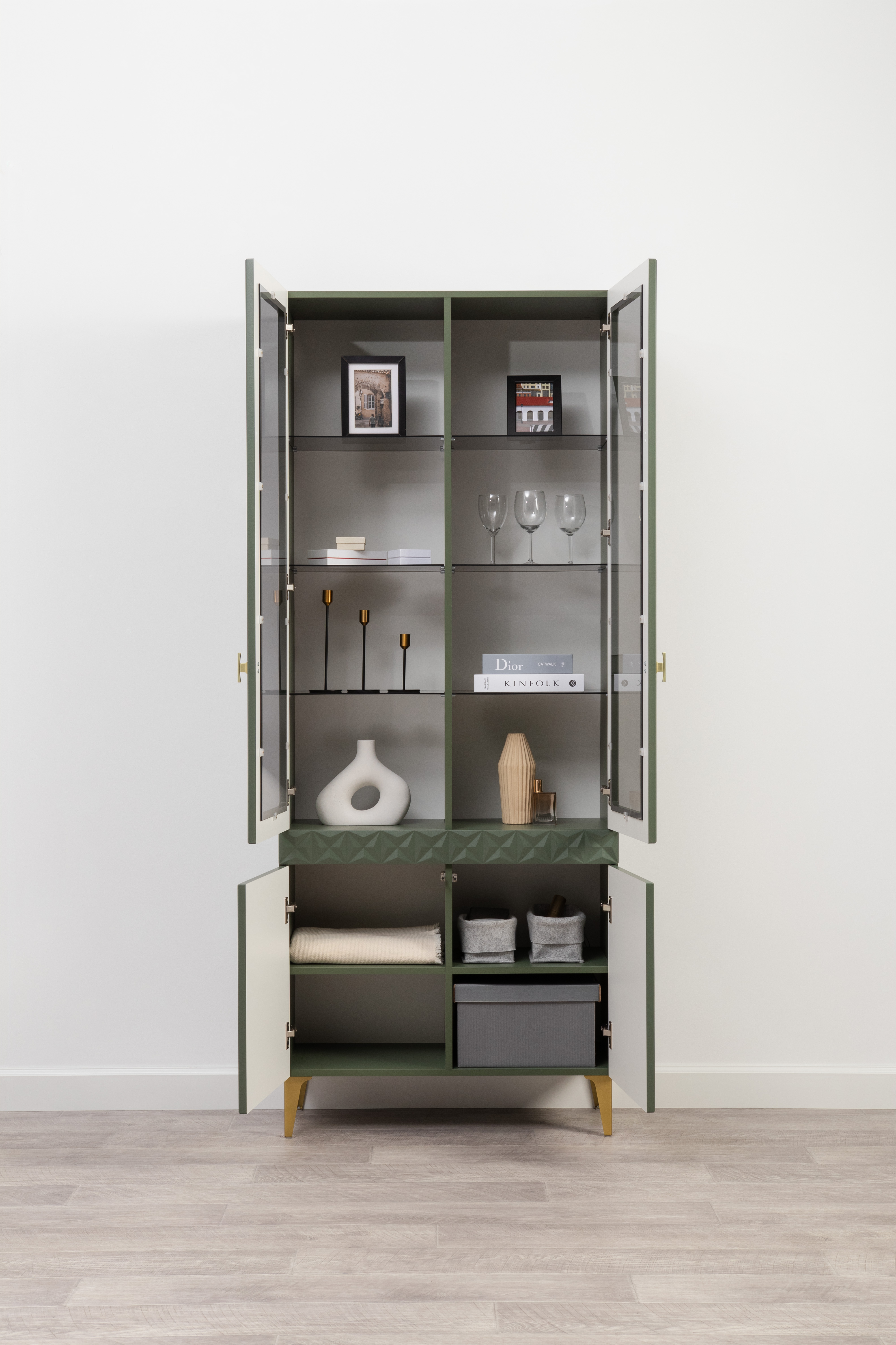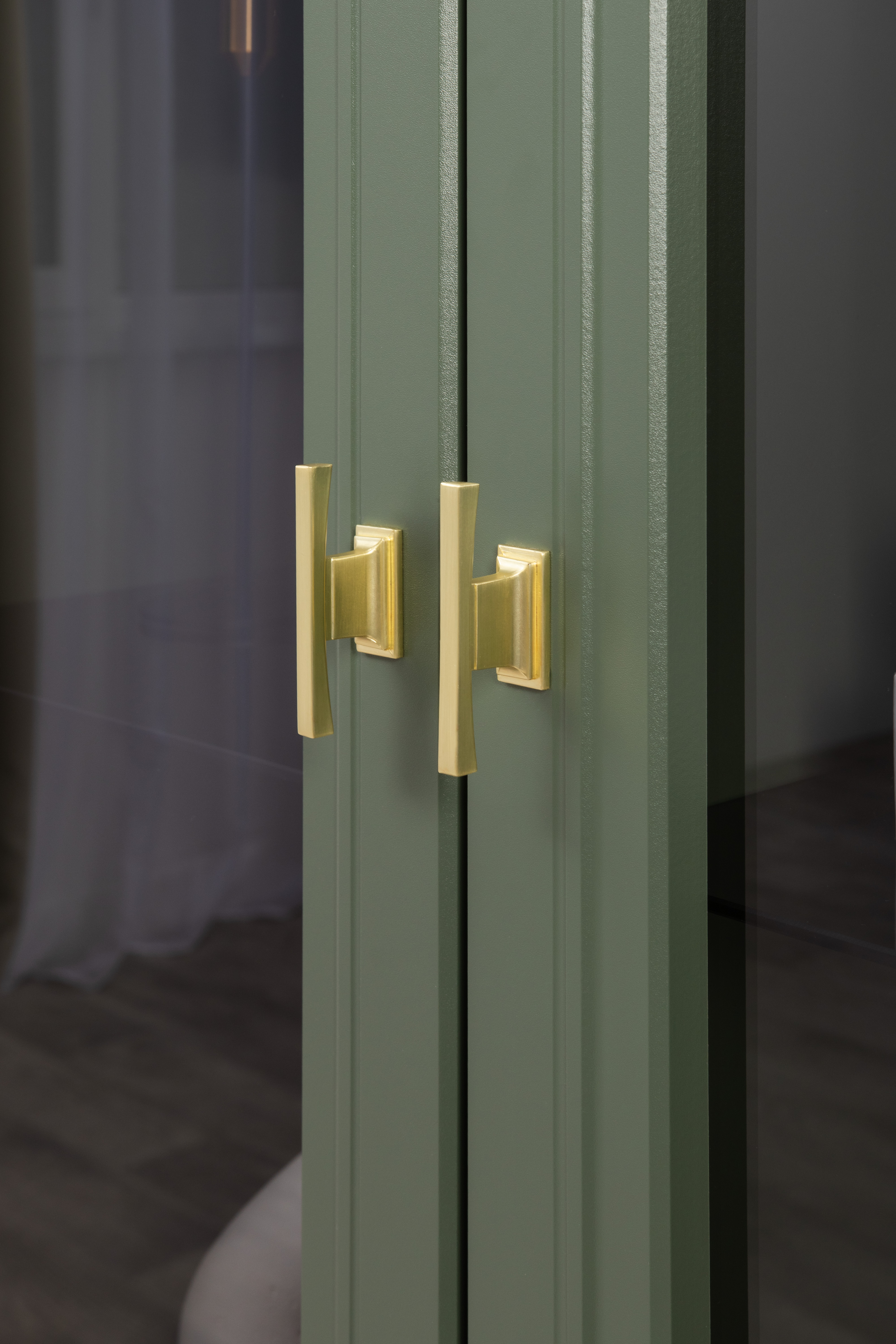 Шкаф-витрина Марион 16.397.02 дымчатый зеленый K521, олива шагрень AG 1050 ПВХ