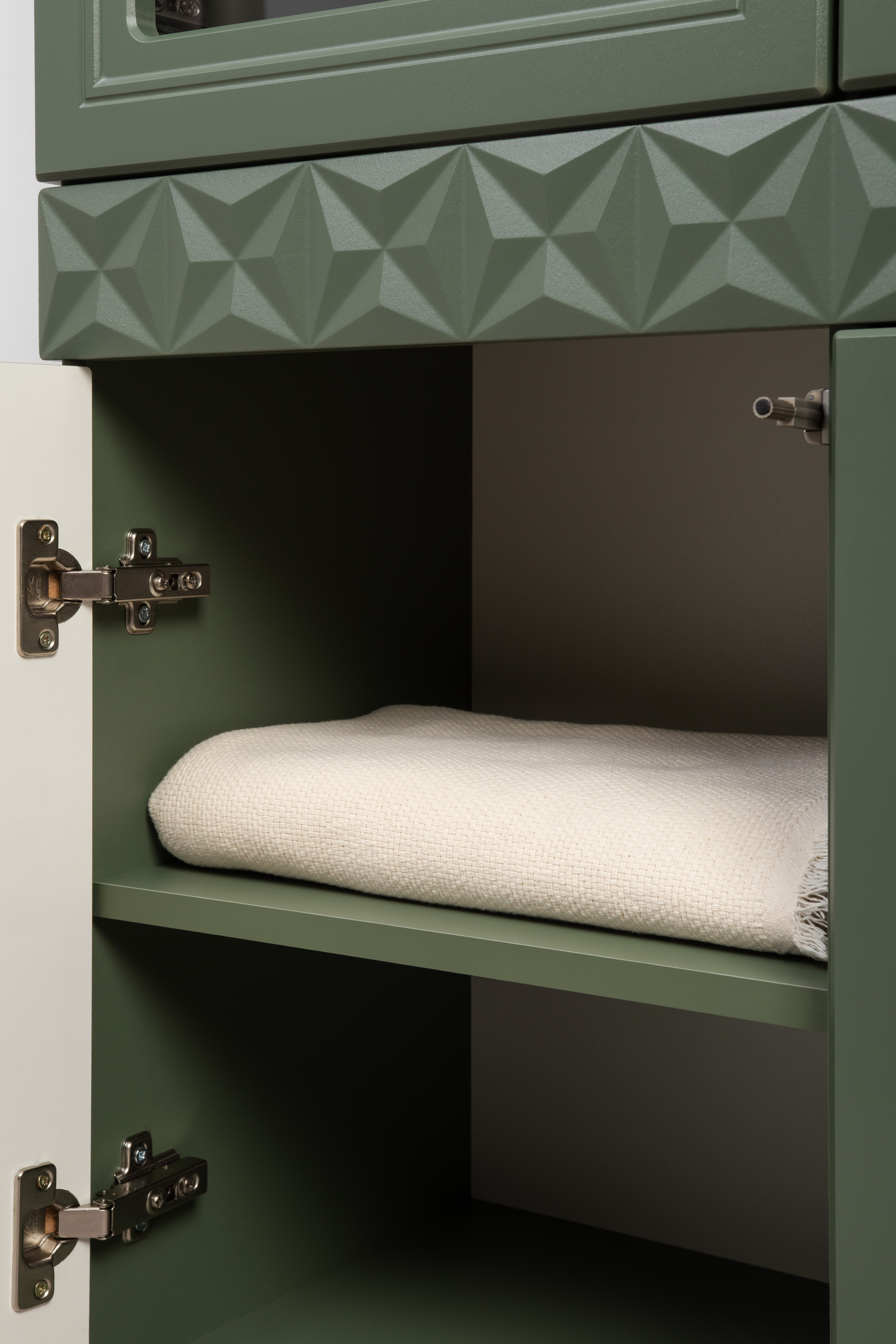 Тумба Марион 16.167 дымчатый зеленый K521, олива шагрень AG 1050 ПВХ, белый PE шагрень