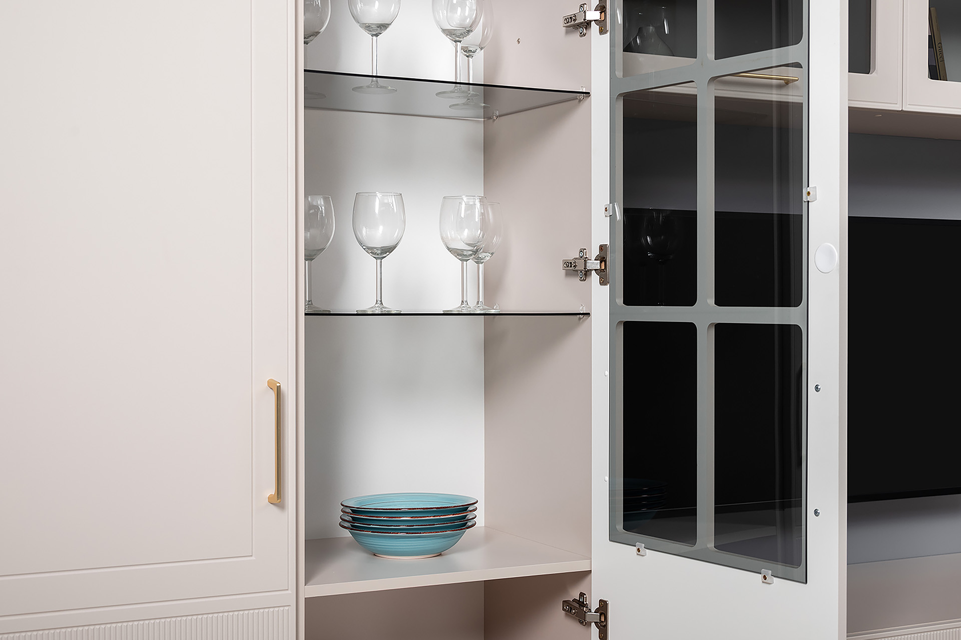 Шкаф-витрина Ричфорд 16.396 кашемир 5981 BS, моно керамика D166-2 ПВХ (собирается на любую сторону)