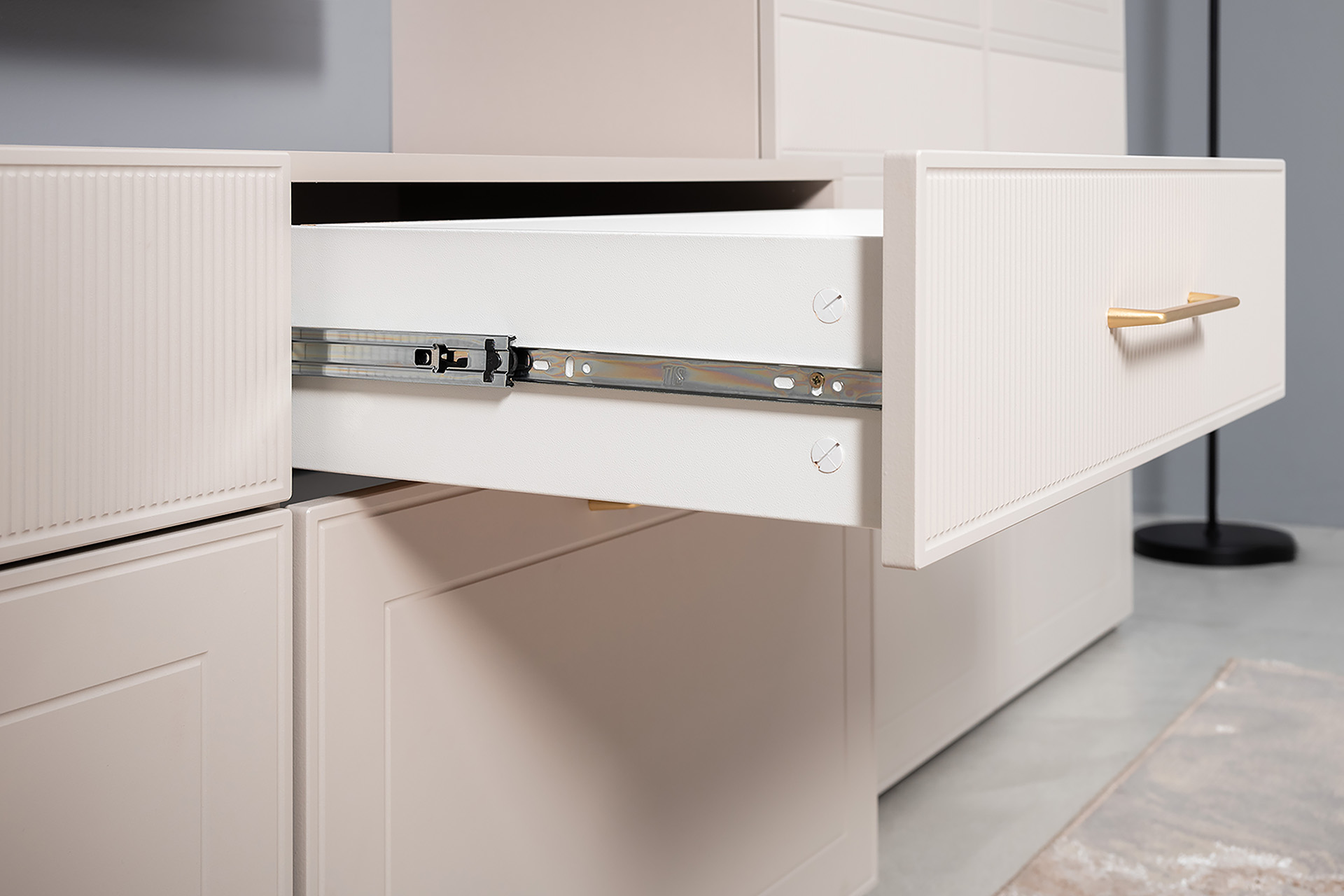Тумба под ТВ Ричфорд 16.61 кашемир 5981 BS, моно керамика D166-2 ПВХ, белый PE шагрень