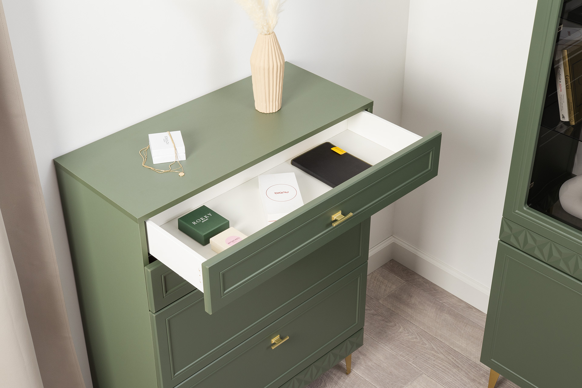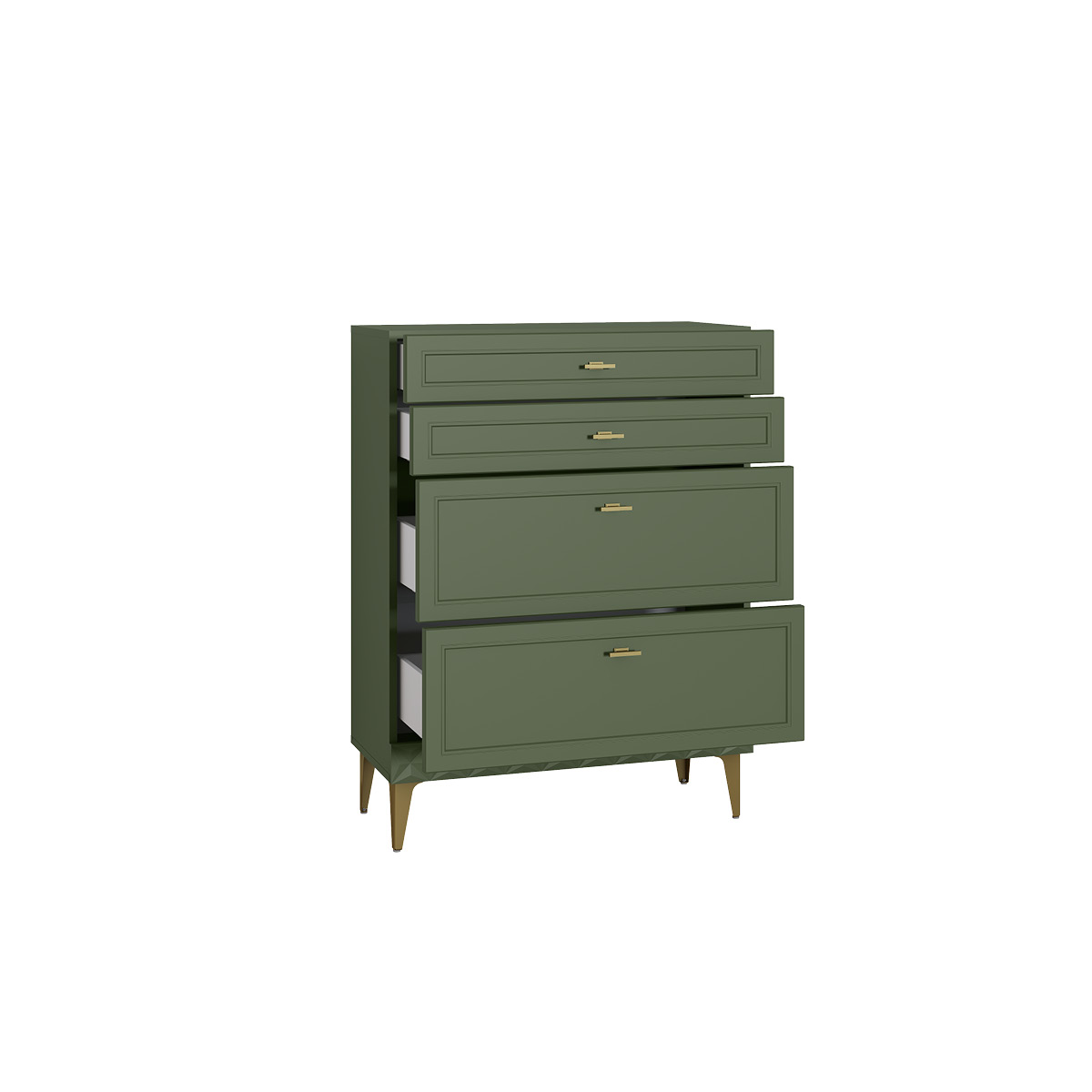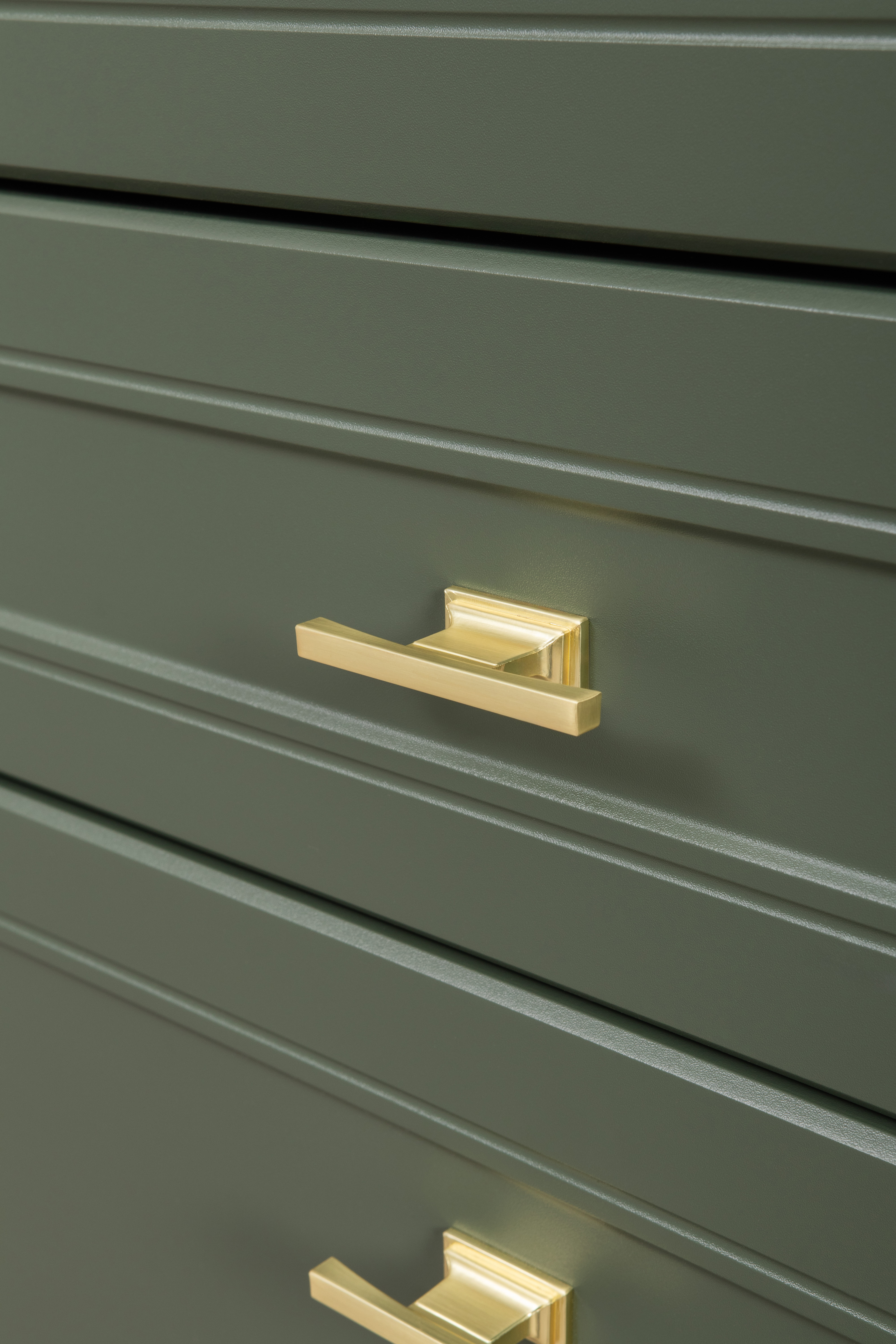 Комод Марион 16.249 дымчатый зеленый K521, олива шагрень AG 1050 ПВХ, белый PE шагрень