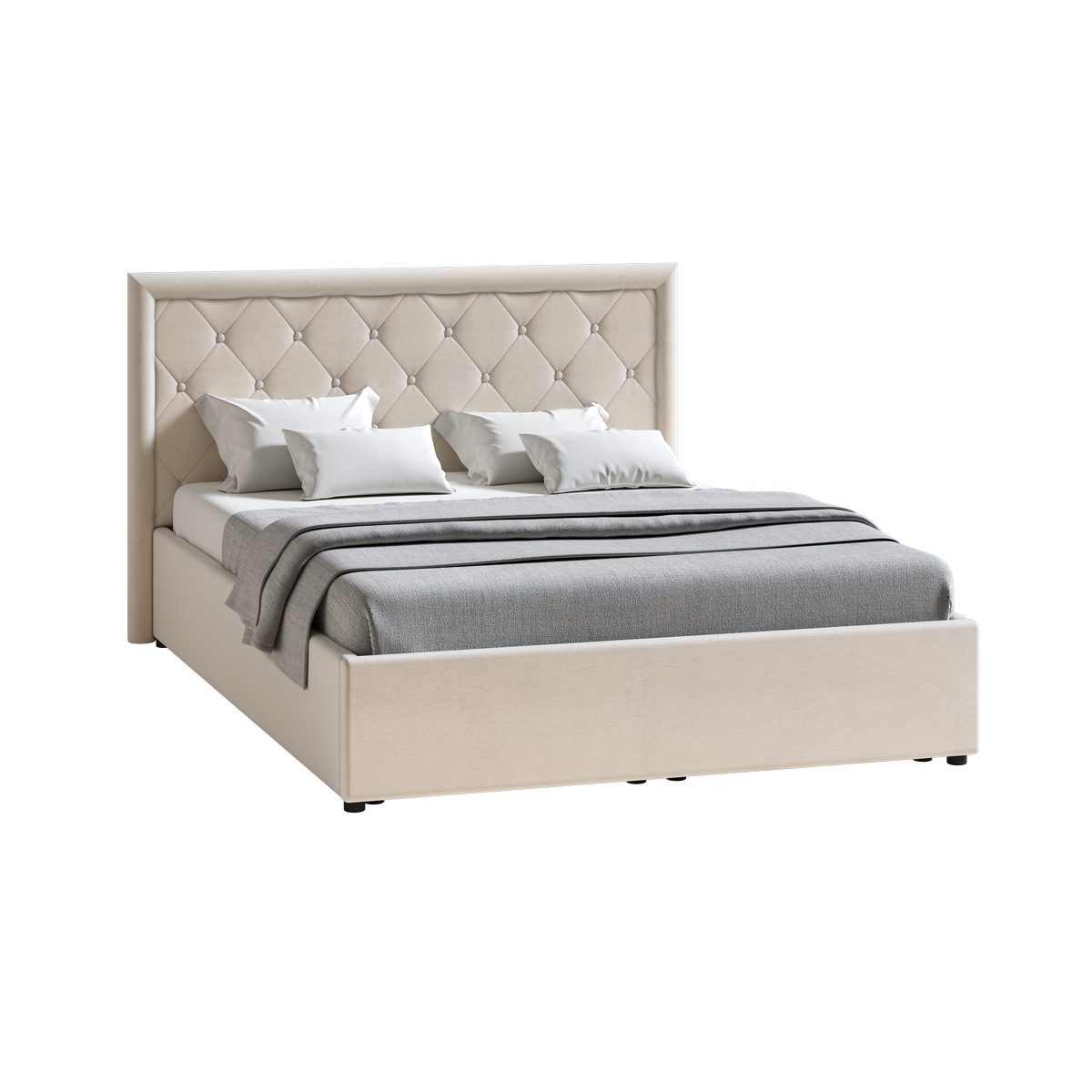 Кровать Марион 140 велюр OCEAN 002 бежевый с ортопедическим основанием и подъемным механизмом (спальное место 140 х 200)