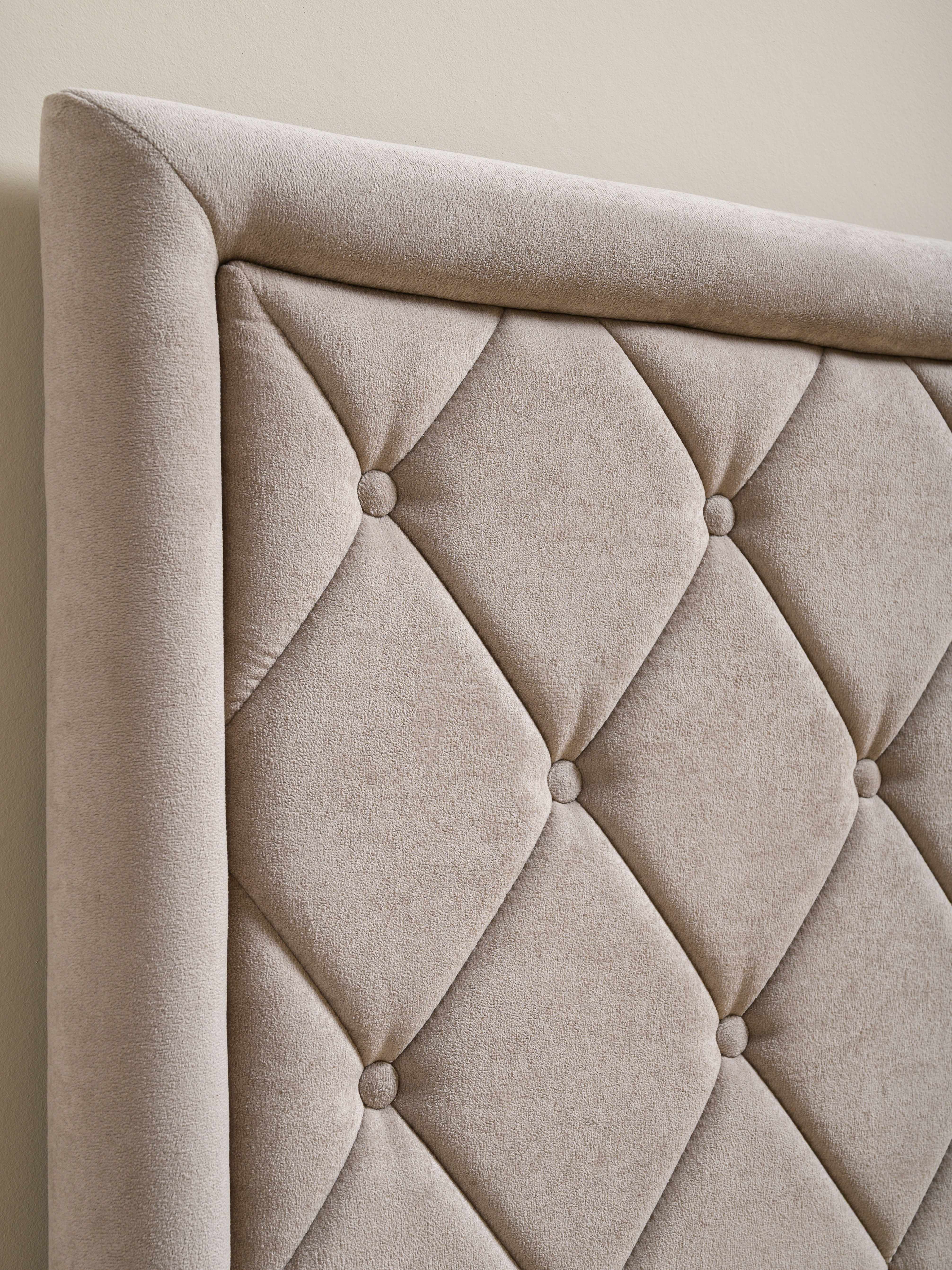 Кровать Марион — это идеальное сочетание стиля и комфорта. Элегантное изголовье оформлено стежкой в виде классической каретной стяжки, украшенной декоративными пуговицами, что придаёт изделию выразительный и утончённый вид. По всему периметру кровати проходит аккуратный валик, подчеркивающий геометрию и завершённость формы.
