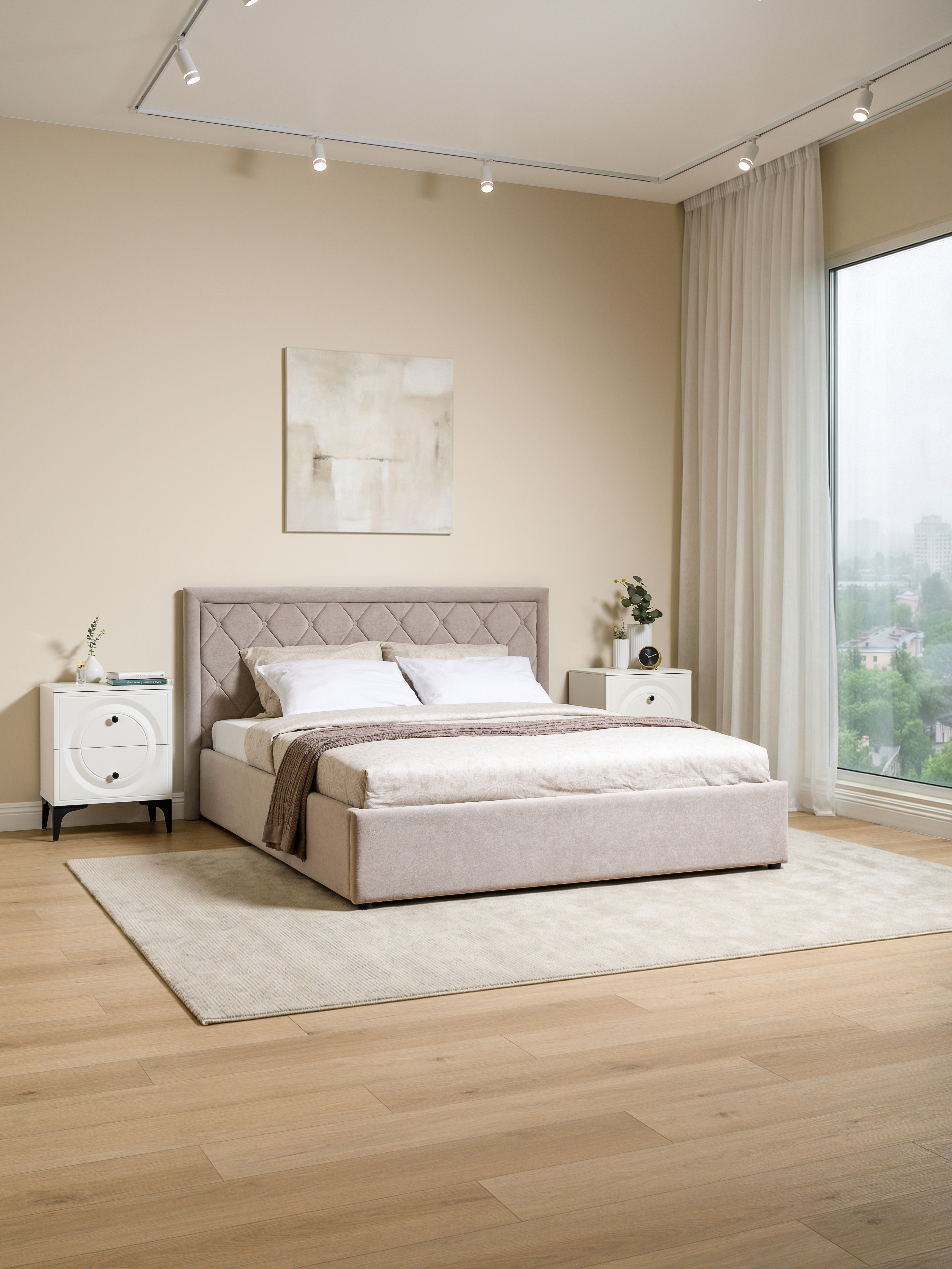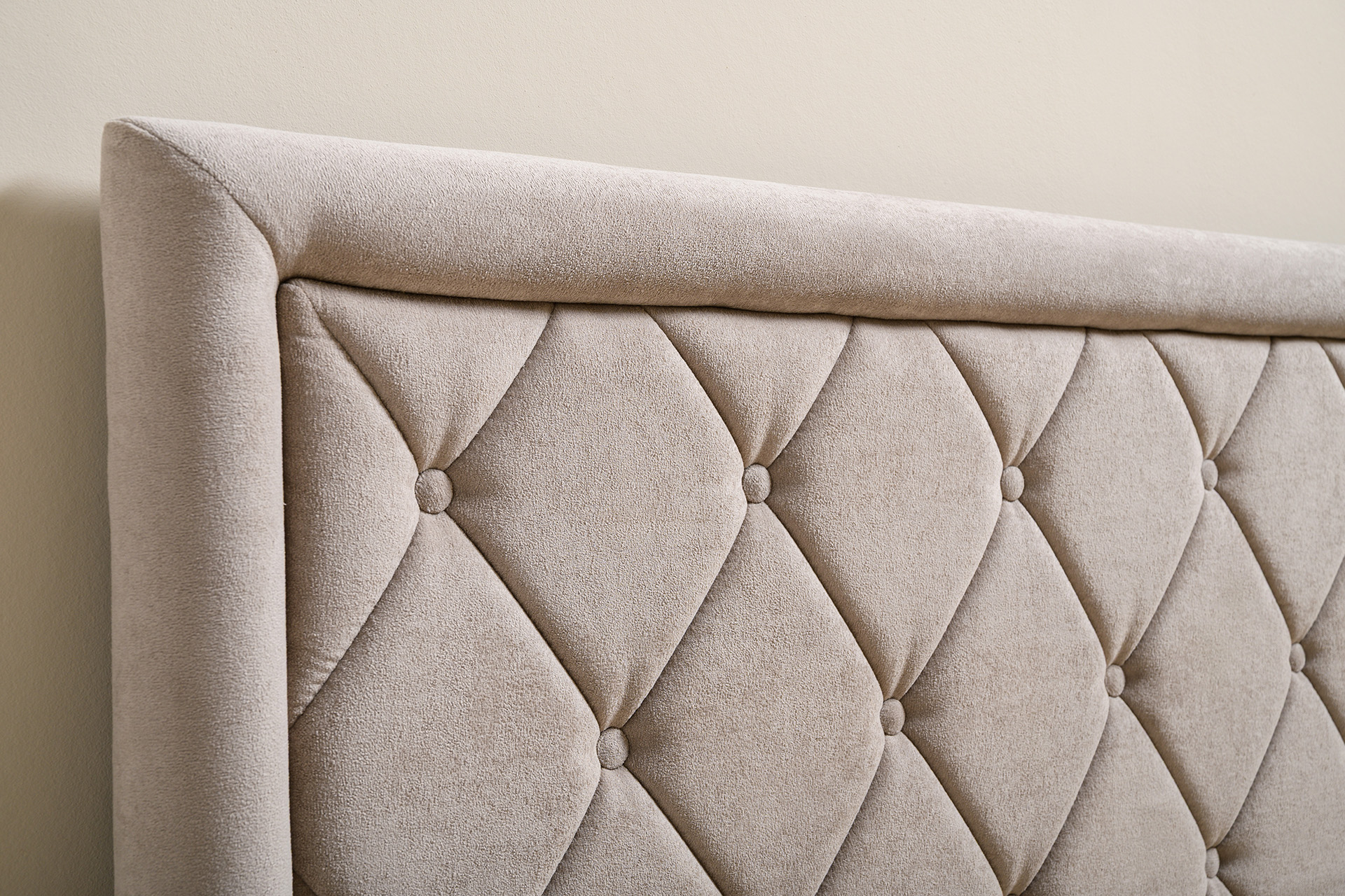 Кровать Марион — это идеальное сочетание стиля и комфорта. Элегантное изголовье оформлено стежкой в виде классической каретной стяжки, украшенной декоративными пуговицами, что придаёт изделию выразительный и утончённый вид. По всему периметру кровати проходит аккуратный валик, подчеркивающий геометрию и завершённость формы.