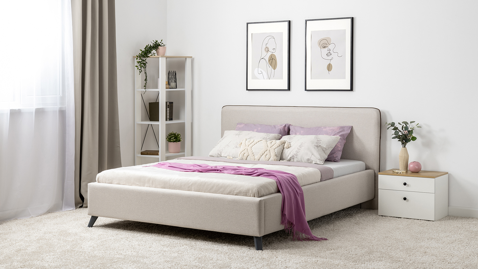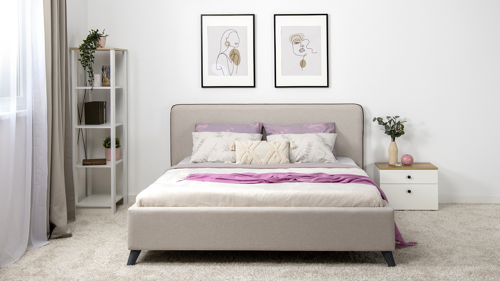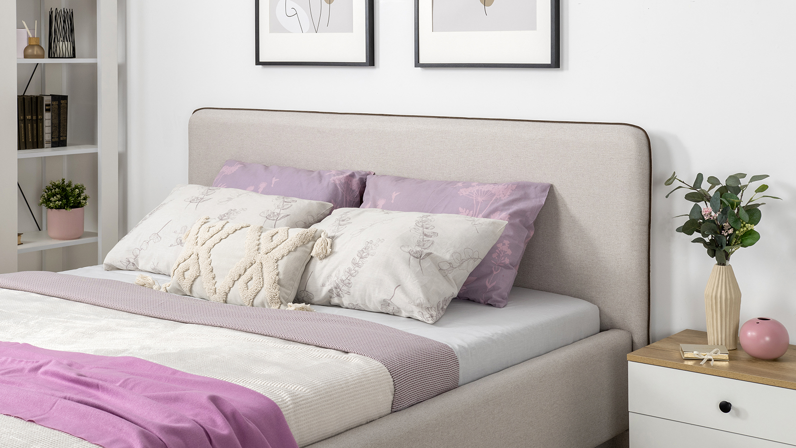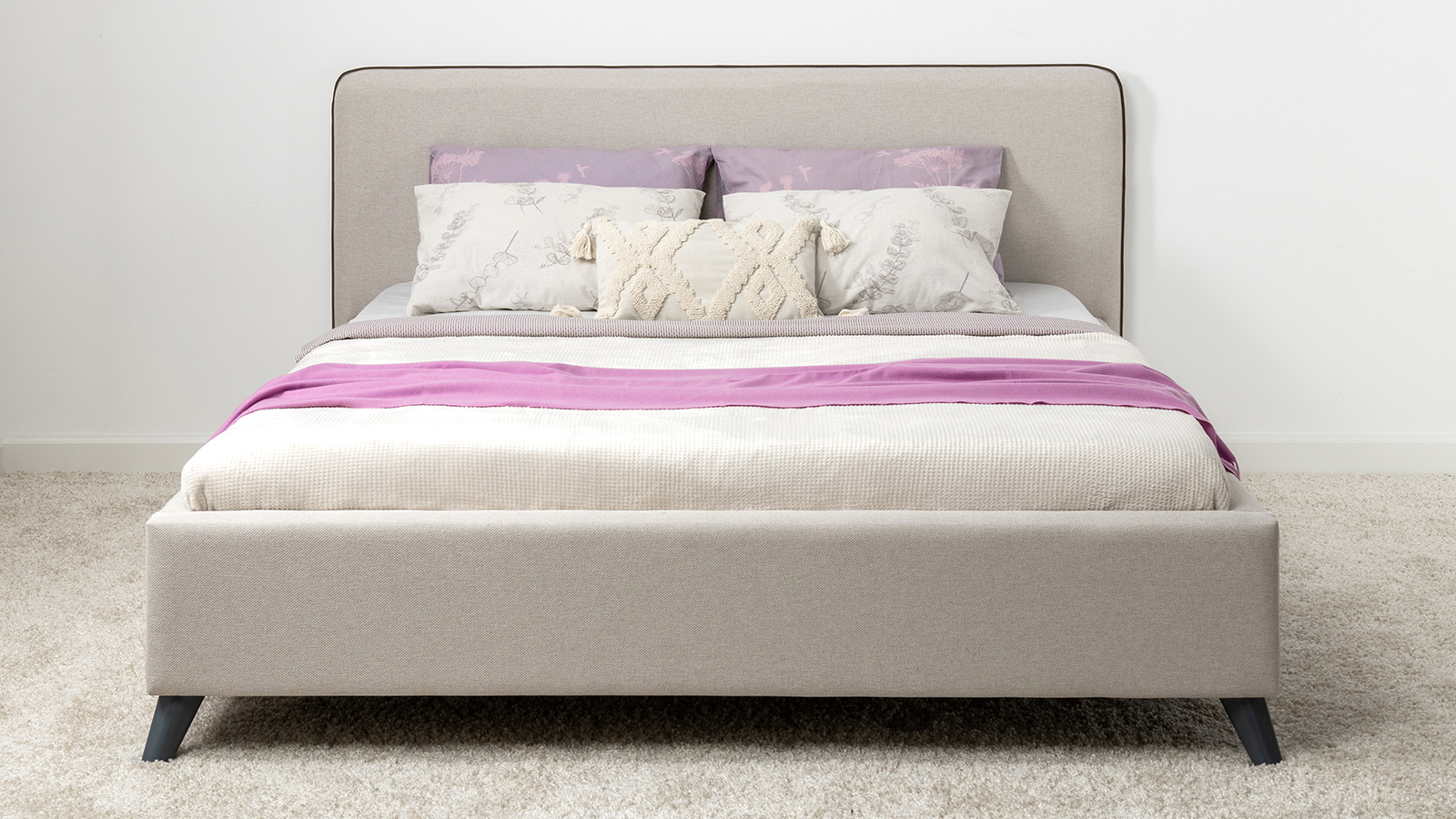 Кровать Миа 180 светло-бежевый, кант желтовато-коричневый с ортопедическим основанием и подъемным механизмом