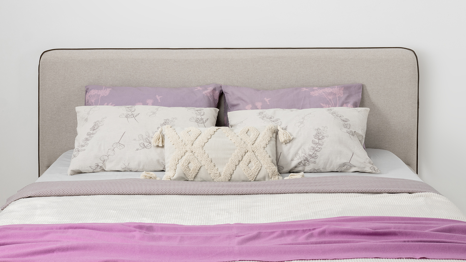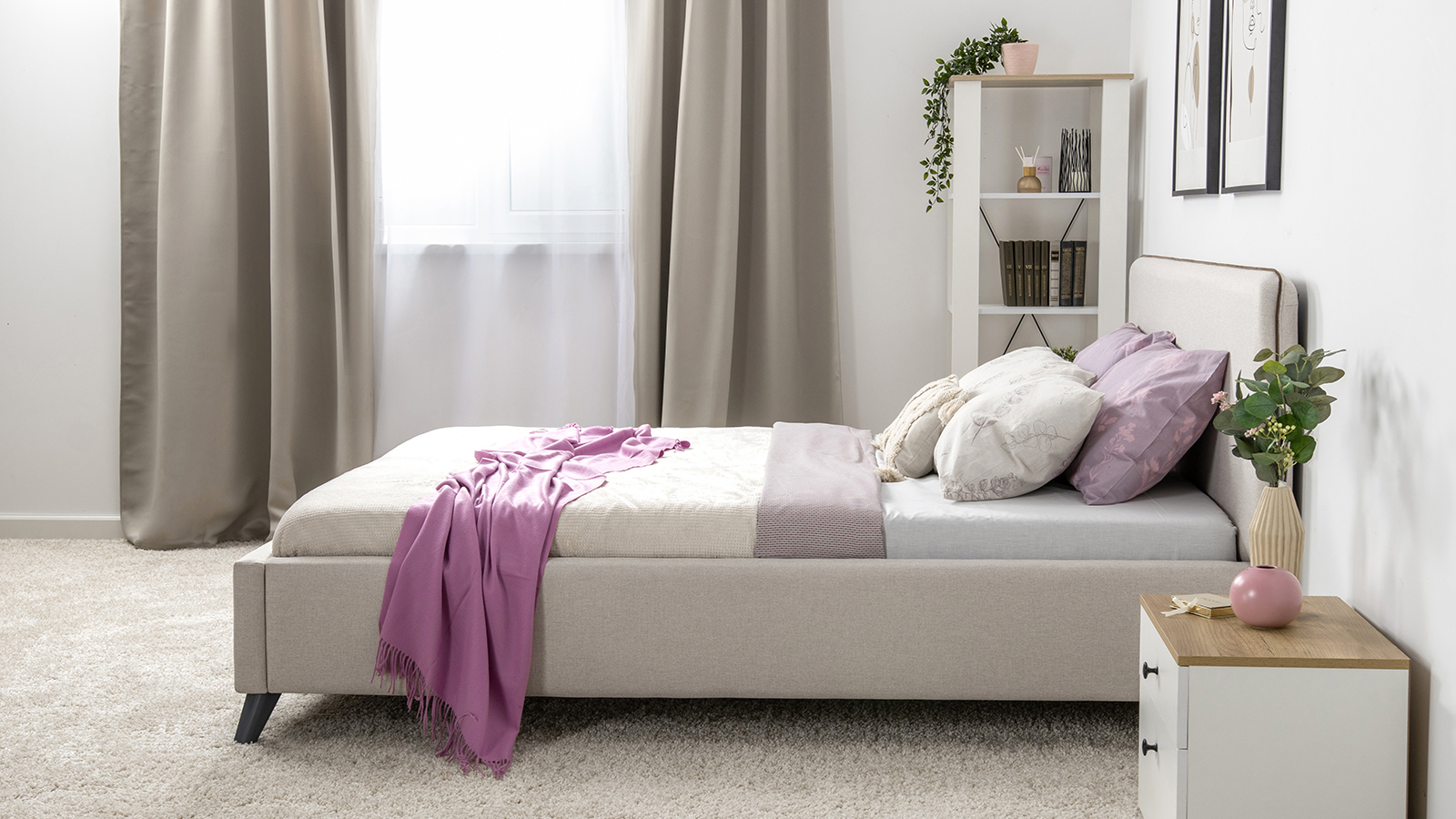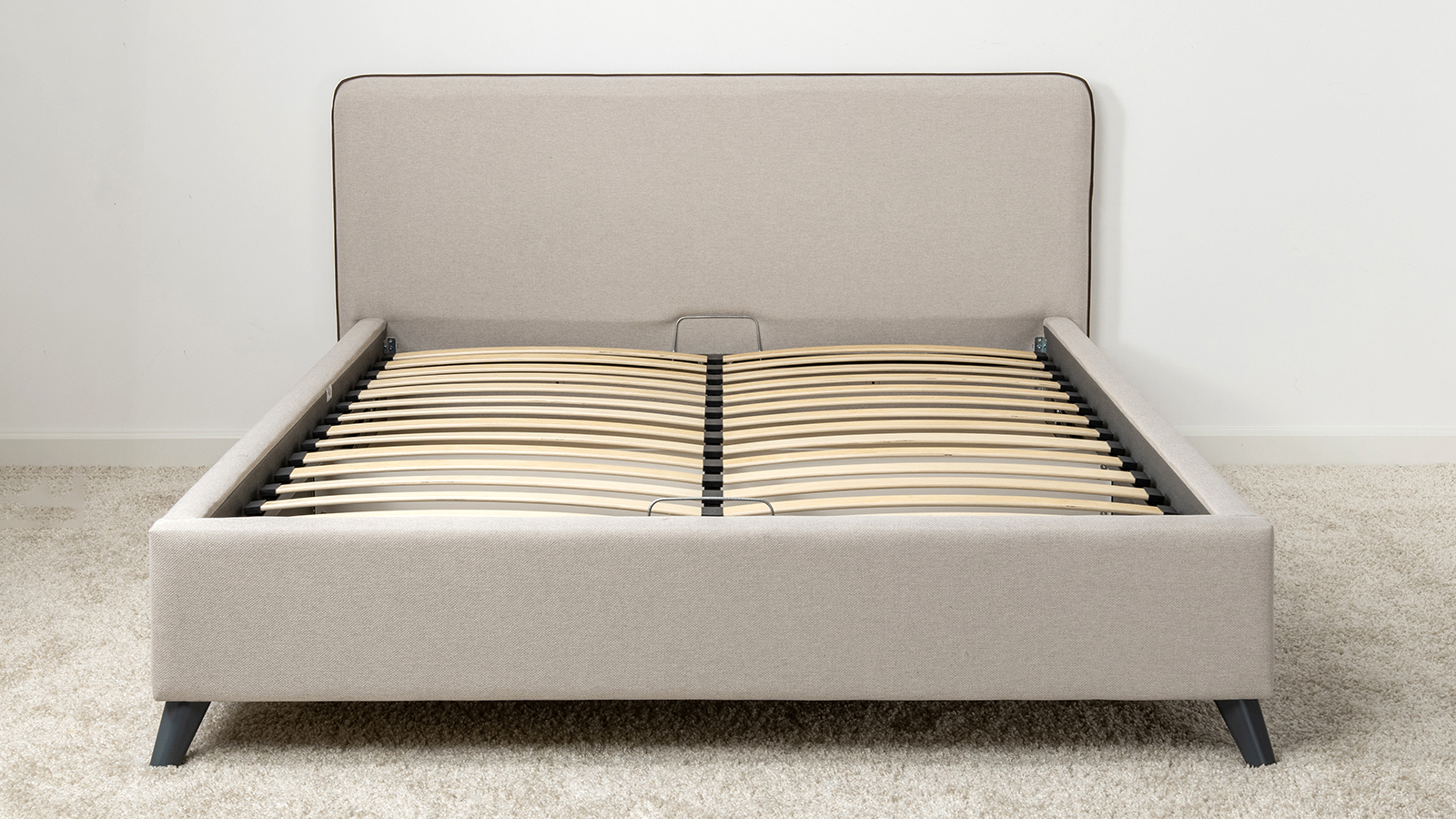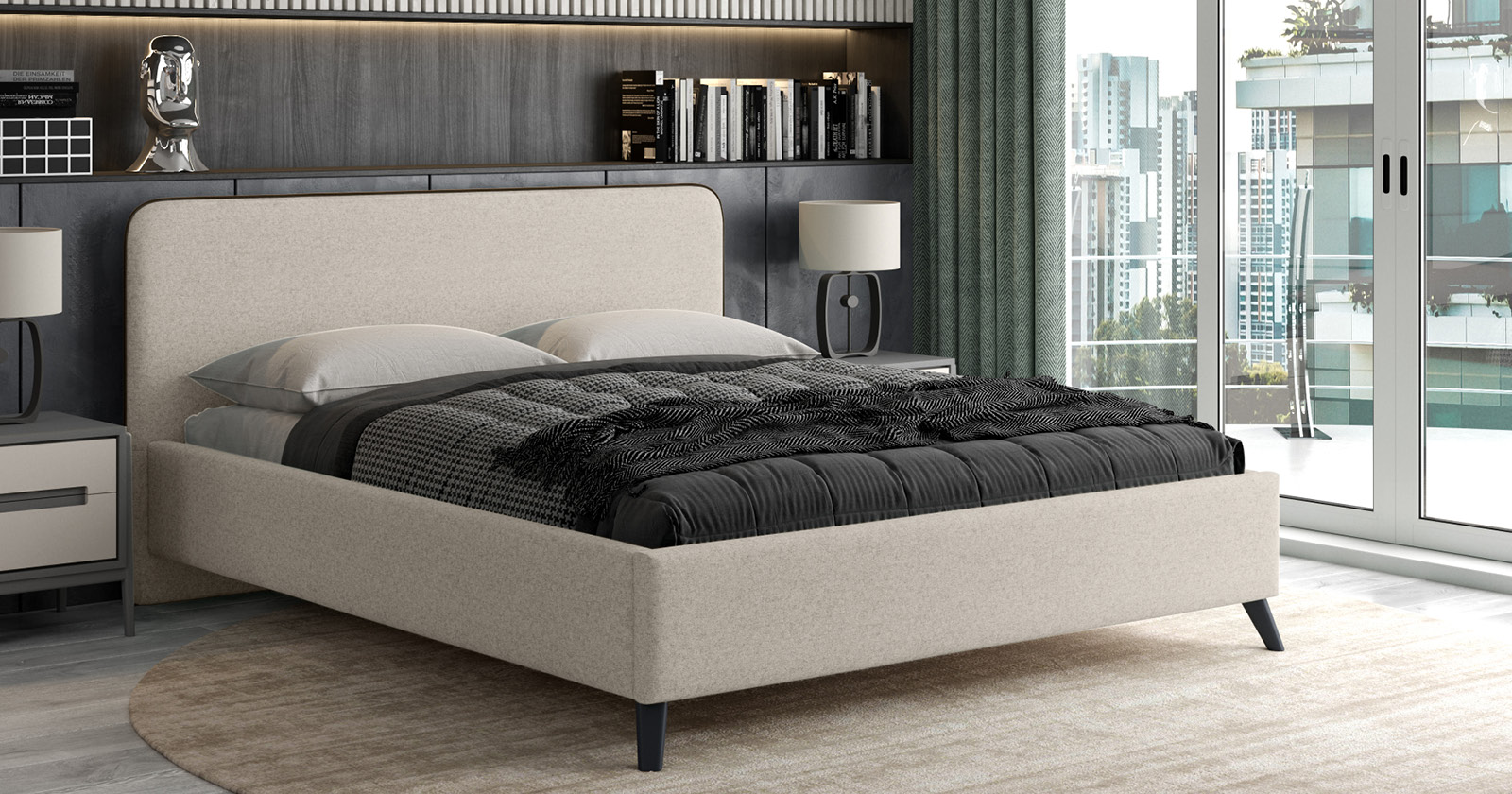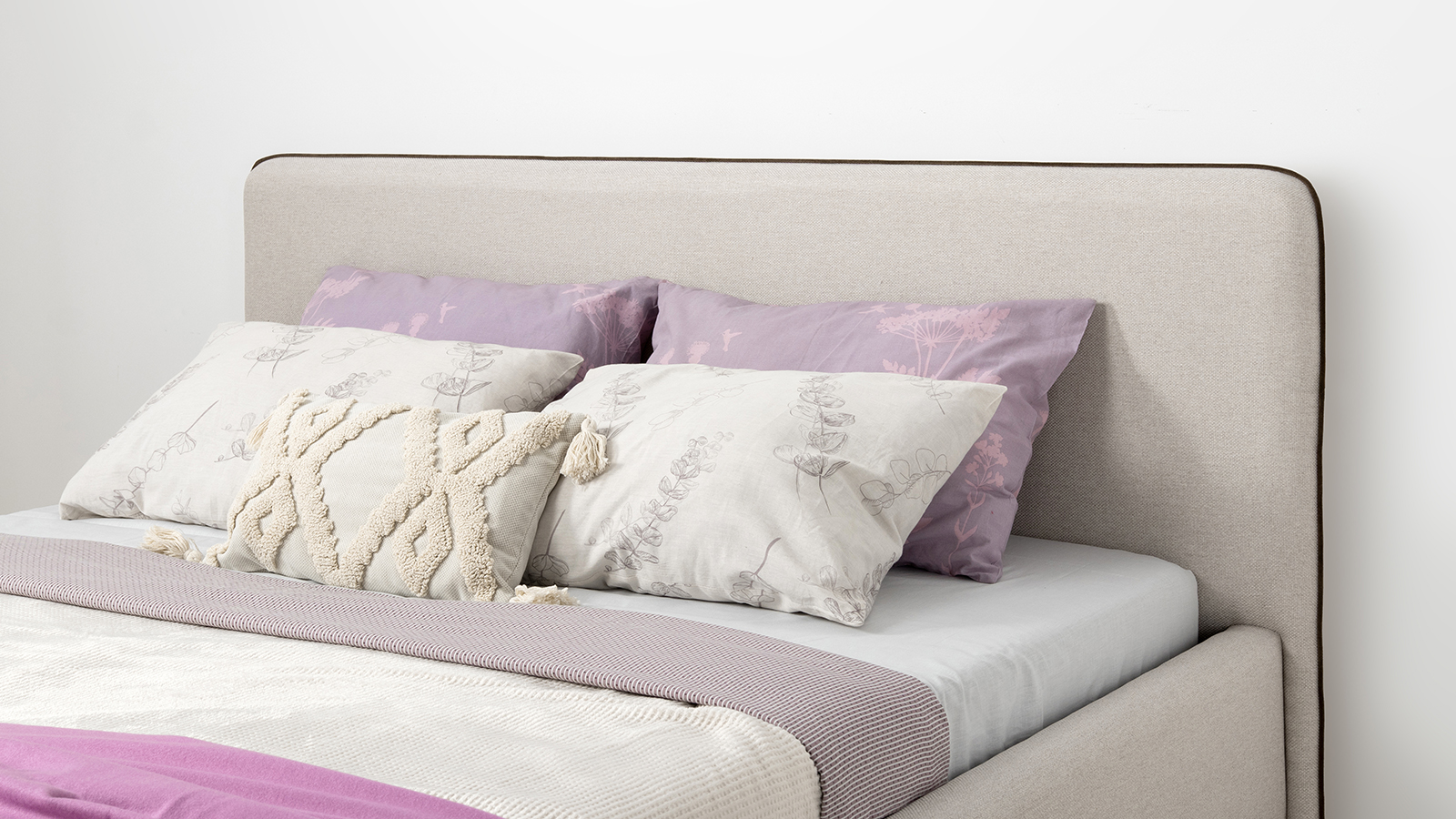 Кровать Миа 180 светло-бежевый, кант желтовато-коричневый с ортопедическим основанием и подъемным механизмом