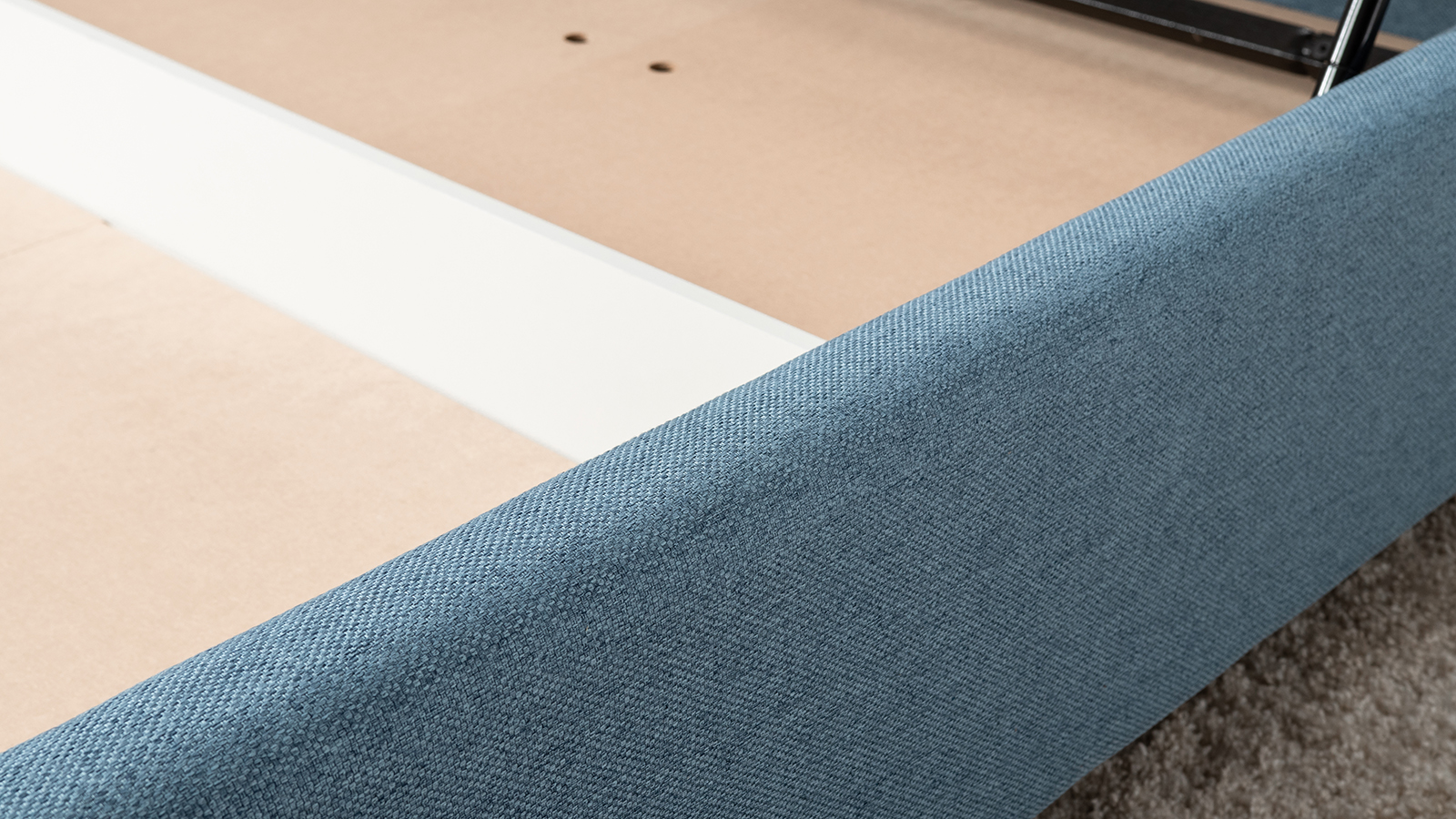 Кровать Миа 160 рогожка светло-синий, кант желтовато-коричневый с ортопедическим основанием и подъемным механизмом