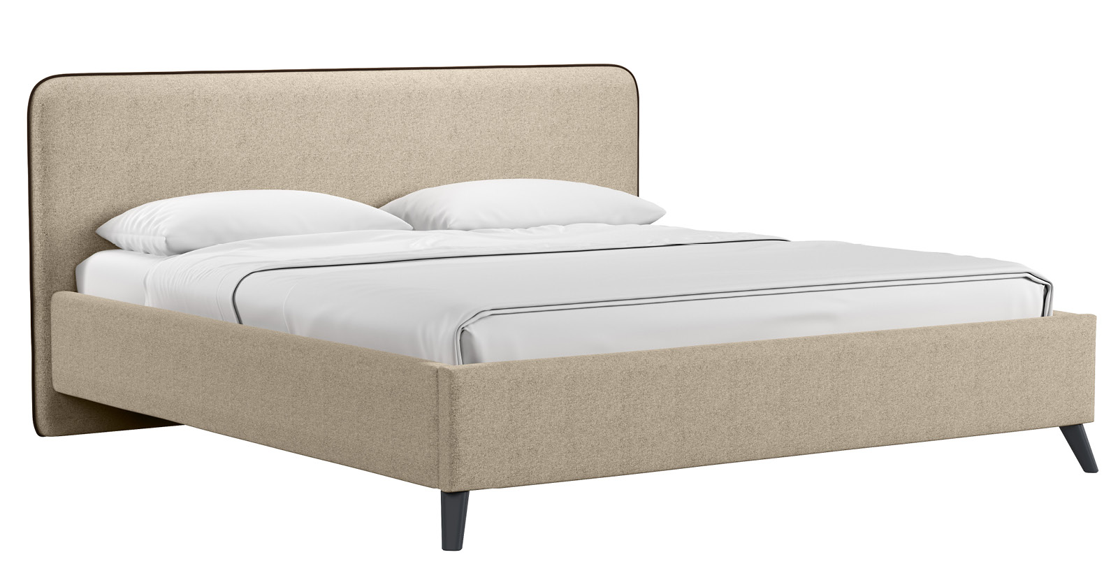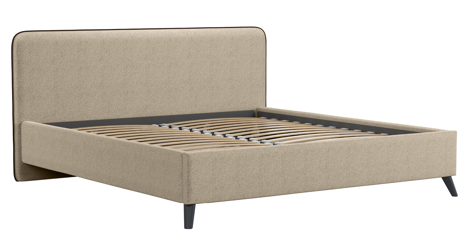 Кровать Миа 160 рогожка светло-бежевый, кант желтовато-коричневый с ортопедическим основанием и подъемным механизмом