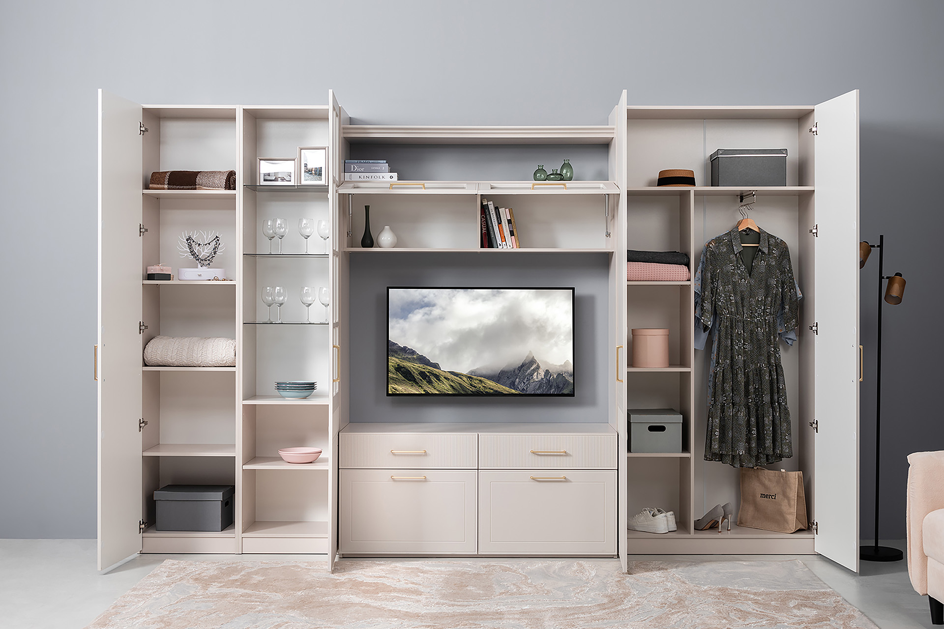 Тумба под ТВ Ричфорд 16.61 кашемир 5981 BS, моно керамика D166-2 ПВХ, белый PE шагрень