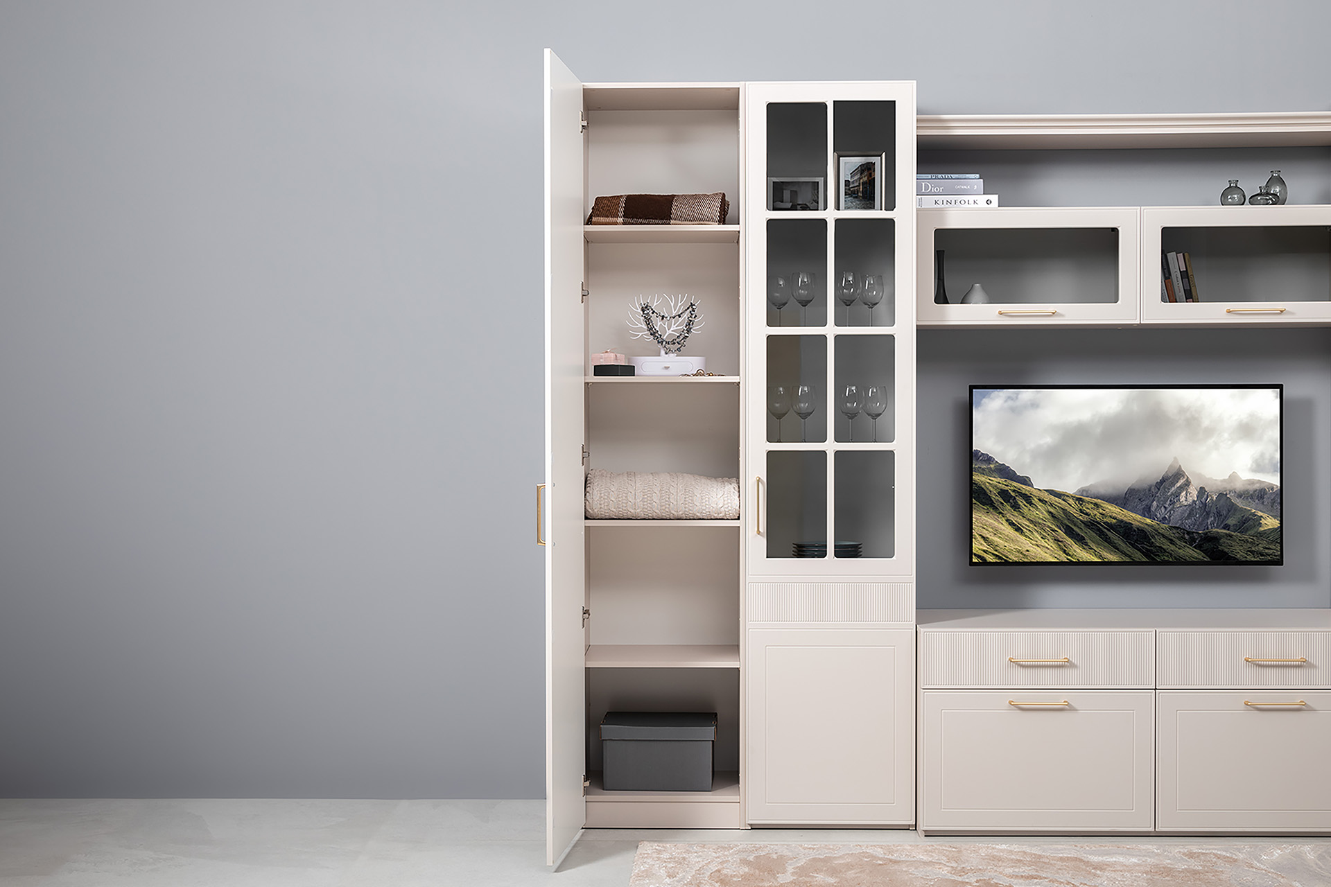 Шкаф-витрина Ричфорд 16.396 кашемир 5981 BS, моно керамика D166-2 ПВХ (собирается на любую сторону)
