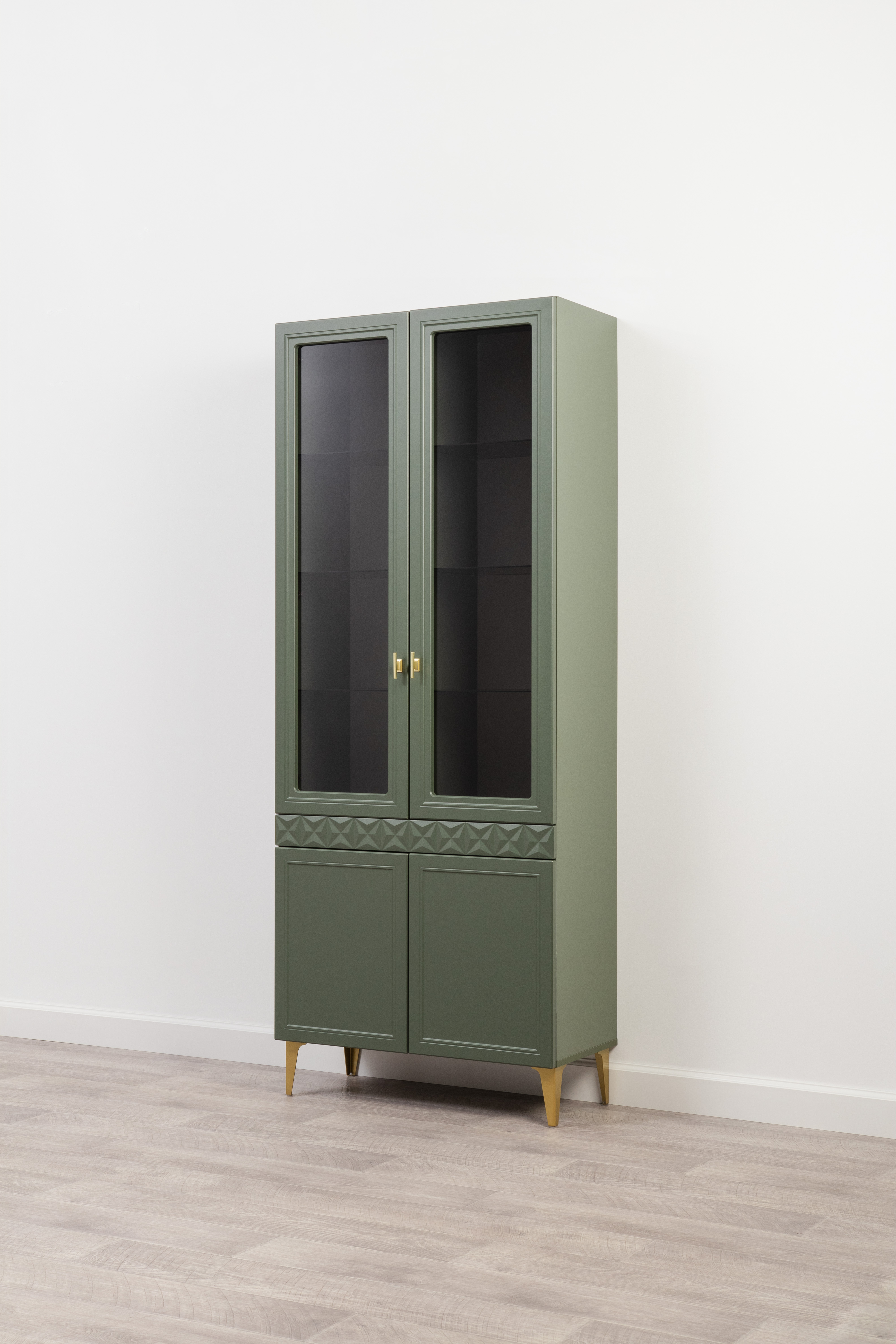 Шкаф-витрина Марион 16.397.02 дымчатый зеленый K521, олива шагрень AG 1050 ПВХ (собирается на любую сторону)
