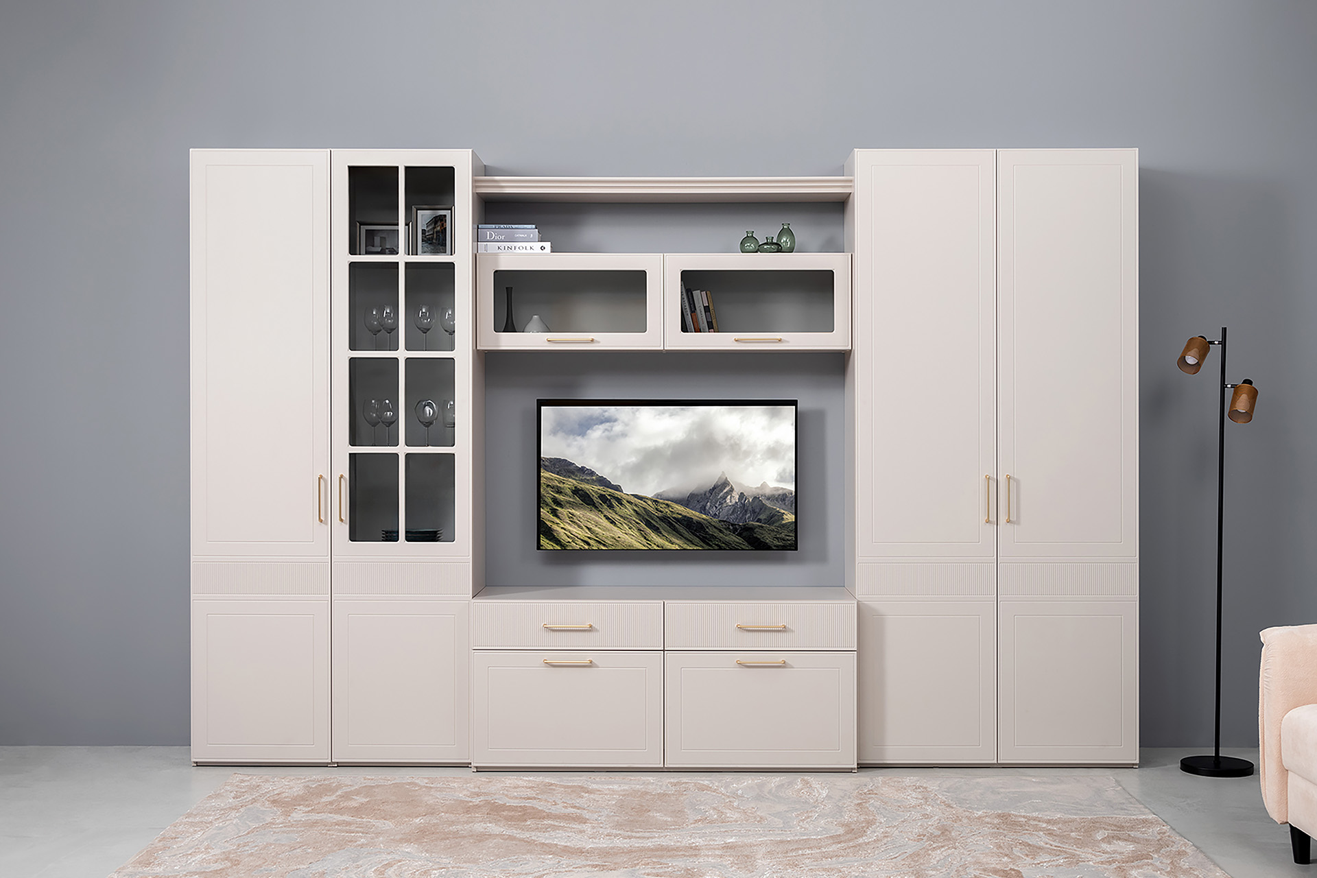 Тумба под ТВ Ричфорд 16.61 кашемир 5981 BS, моно керамика D166-2 ПВХ, белый PE шагрень