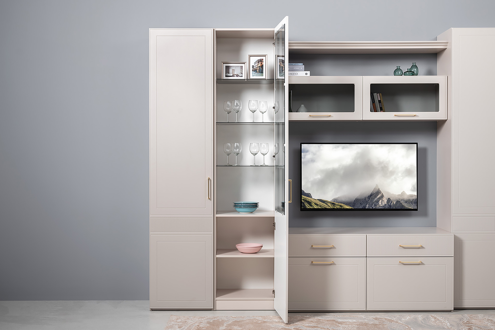 Шкаф-витрина Ричфорд 16.396 кашемир 5981 BS, моно керамика D166-2 ПВХ (собирается на любую сторону)