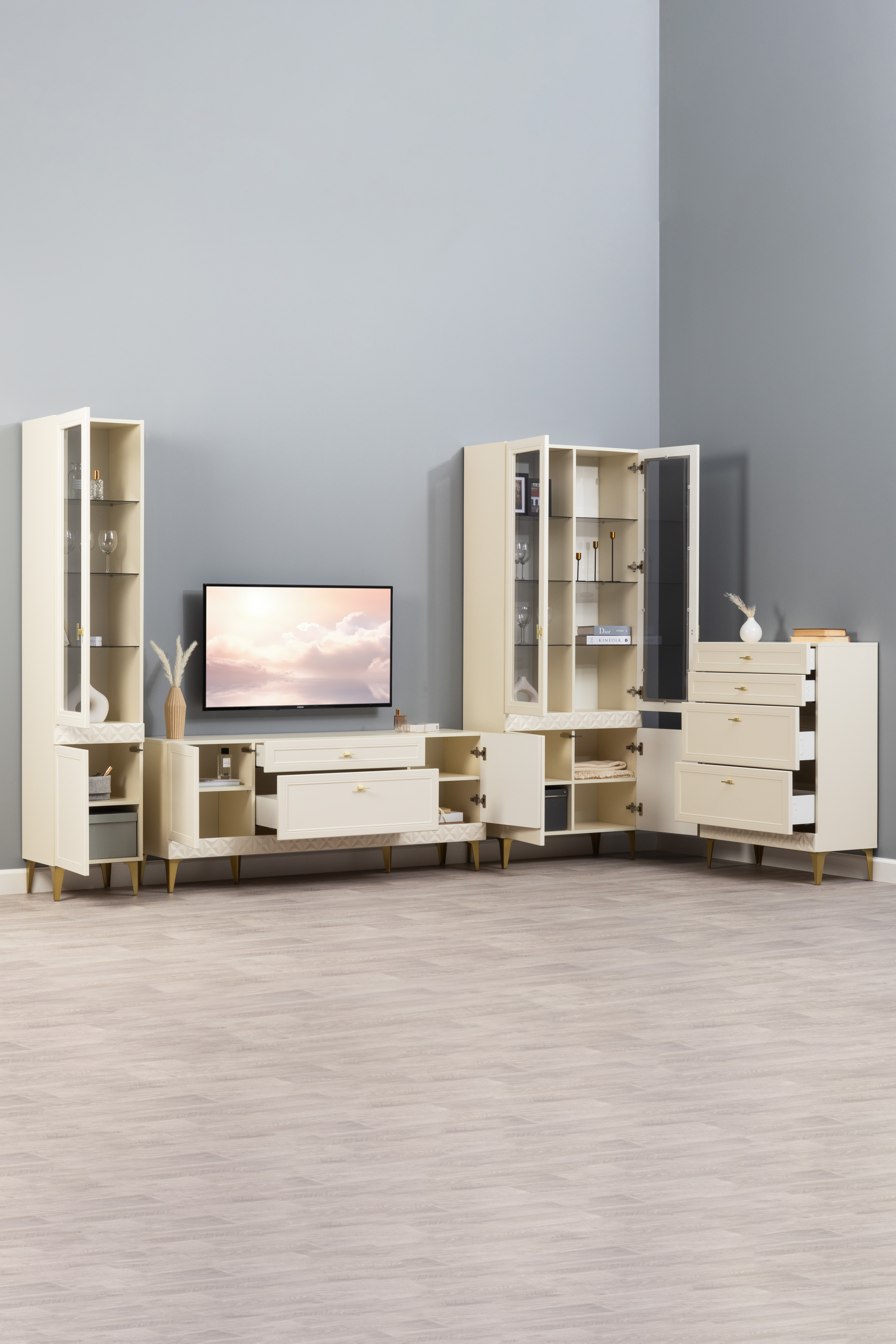 Комод Марион 16.249 слоновая кость С341 PE, слоновая кость 6898 ПВХ, белый PE шагрень